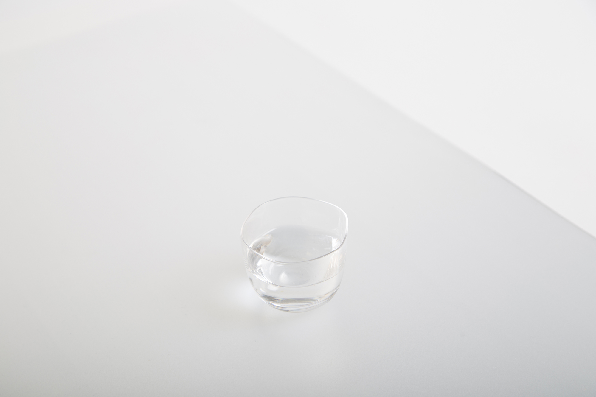It is composed of a very simple katakuchi and glass. Its round bottom provides a nice fit in the palm of the hand. This curvy base is slightly evolving to become a soft pentagon at the edges of the product. This delicate evolution and the smooth angles visible at the top of the glass give a modern look to this humble product.